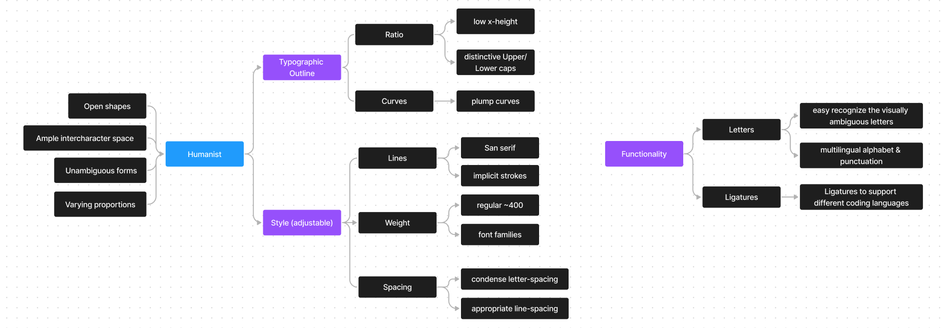 Legibility is a very important part of coding scenarios. According to font legibility research, scholars judge fonts according to four dimensions: Open shapes, Ample intercharacter space, Unambiguous forms and Varying proportions. Typefaces that all conform to the standard are called humanist, and those that do not meet the standard are called square grotesque. Fonts that are closer to humanist are easier to capture and read on multi-text displays.